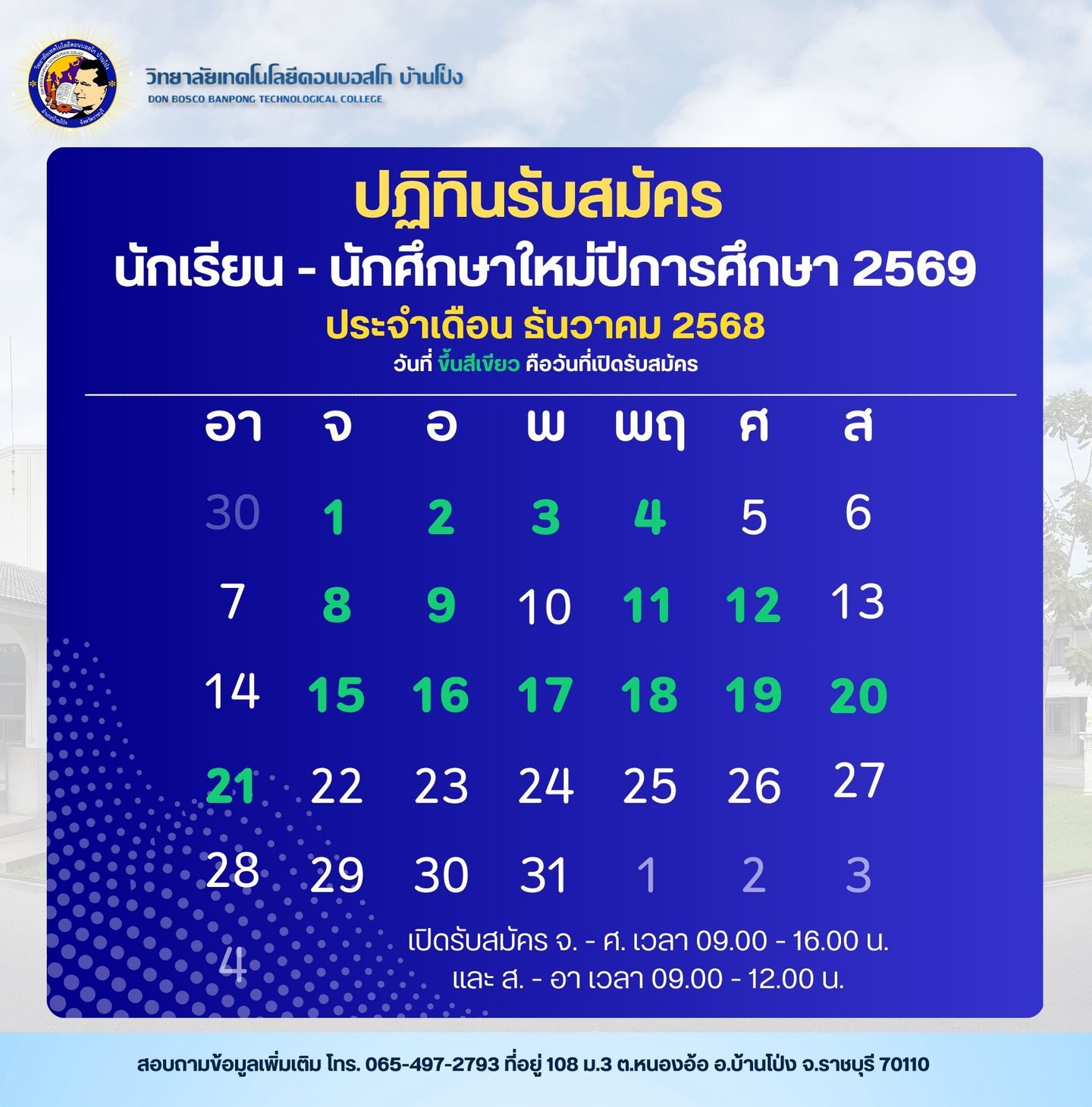 การเปิดรับสมัครนักเรียน-นักศึกษา (ใหม่) ปีการศึกษา 2569