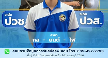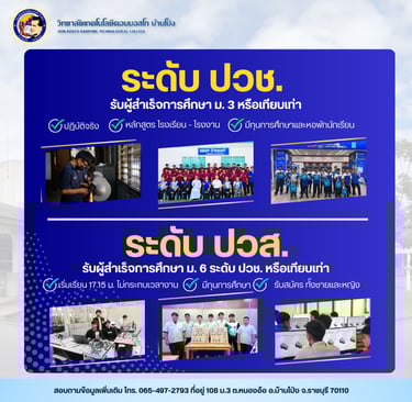 ระดับ ปวส. (เรียนเวลา 17.15 - 21.30 น.) รับนักเรียนที่จบ ปวช.,ม.6 หรือเทียบเท่า รับทั้งผู้ชายและผู้หญิง
